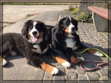 Unsere Berner sind Familienmitglieder und sind meist dort, wo wir auch sind: Im Haus, im Garten, bei Freunden oder auf dem Hundeplatz. Meine inzwischen erwachsenen Söhne Carsten und Alexander, die mit unseren Bernern aufgewachsen sind, leben zwar nicht mehr zu Hause, aber sind so stark mit den Hunden verbunden, dass sie jederzeit bereit sind, sich um die "Viebeiner" zu kümmern. Ich persönlich glaube, dass durch die schöne Kindheit mit den Hunden in der Zukunft ein Hund ihr Leben bereichern wird....und vielleicht sogar ein Berner!!!